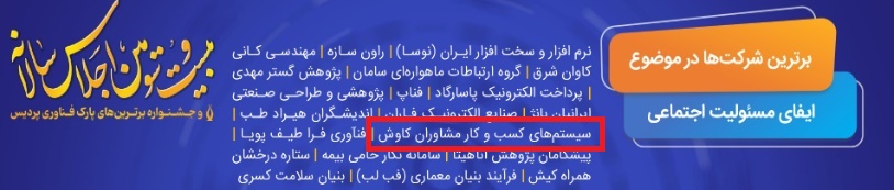 در اجلاس سالیانه منطقه بین المللی نوآوری ایران، شرکت مشاوران کاوش (با نام کامل سیستم های کسب و کار مشاوران کاوش) به عنوان یکی از شرکت های منتخب پارک فناوری پردیس در حوزه مسئولیت اجتماعی در سال 1403 معرفی گردید.